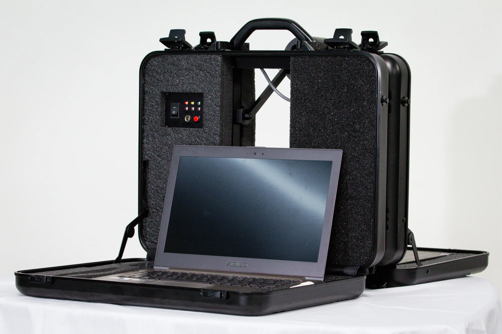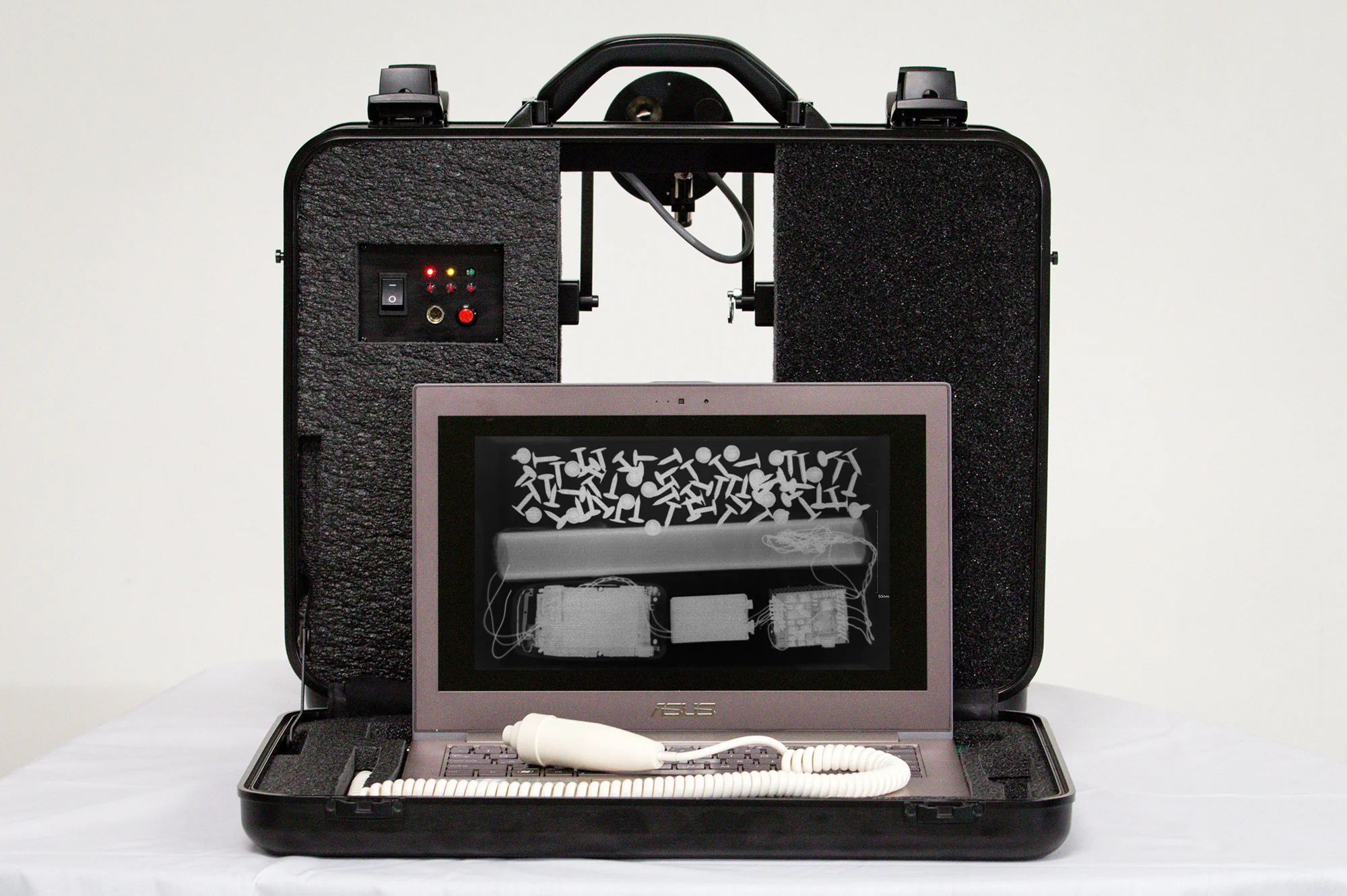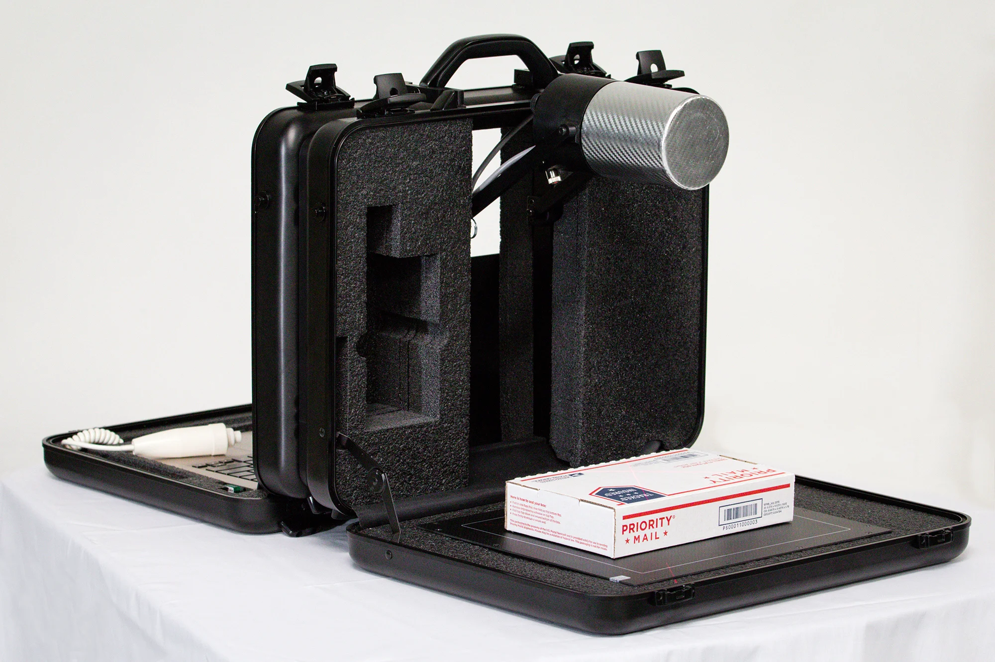 The unit is self-contained and runs on a rechargeable lithium ion battery. It can be deployed anywhere in the world in minutes to provide X-ray imaging of an 8x10in area. From medical imaging on the frontlines or field locations without the infrastructure for conventional high-voltage X-ray imaging machines to security applications including suspicious package identification, the Tribogenics Mobile Imaging System is a flexible and easy to use solution.