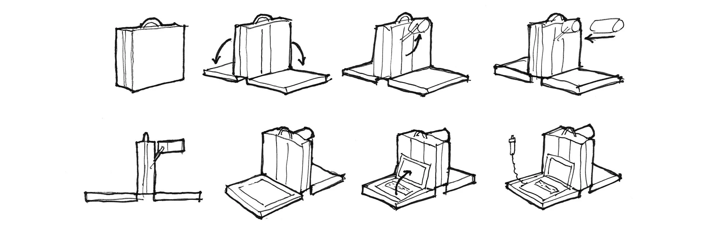 Taking the system on the go is just as easy. Simply remove the cartridge and collapse the receptacle. The case folds closed and the system is ready to go. Constructed from lightweight aluminum and high density foam, the system is durable and easy to carry.
